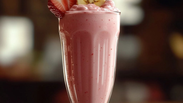Une combinaison parfaite de fraises juteuses et de bananes mûres, mixées avec du lait pour un milkshake savoureux et équilibré.