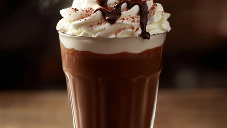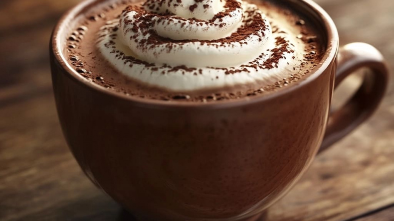 Un chocolat chaud crémeux et riche, préparé avec du vrai cacao et du lait chaud. Il est encore meilleur avec une touche de crème fouettée ou une pincée de cannelle.