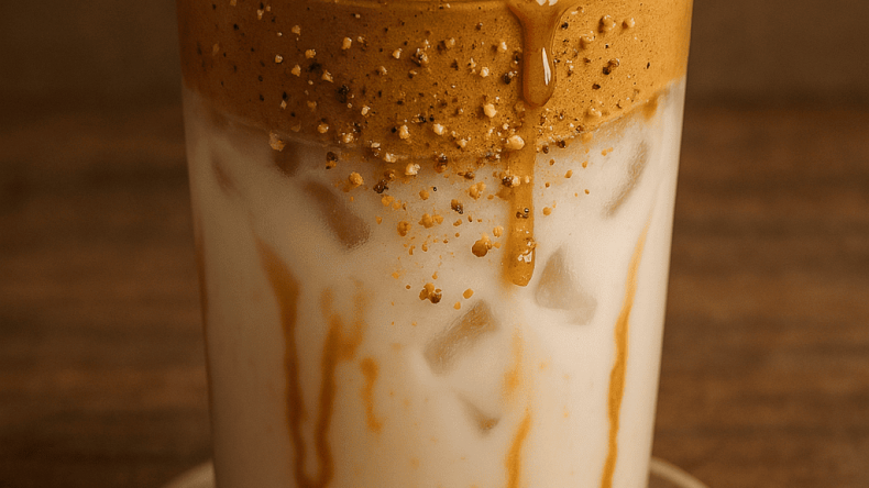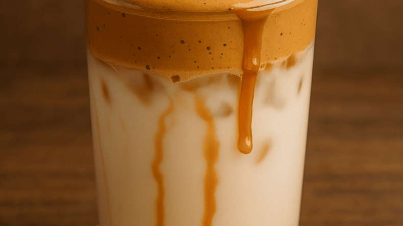 Le nuage gourmand qui fait fondre les cœurs ! Laissez-vous séduire par notre Dalgona Caramel, une boisson aussi belle que délicieuse. Ce délice visuel et gustatif associe un lait onctueux bien frais à une mousse aérienne fouettée au café instantané, le tout sublimé par une note sucrée et dorée de caramel.