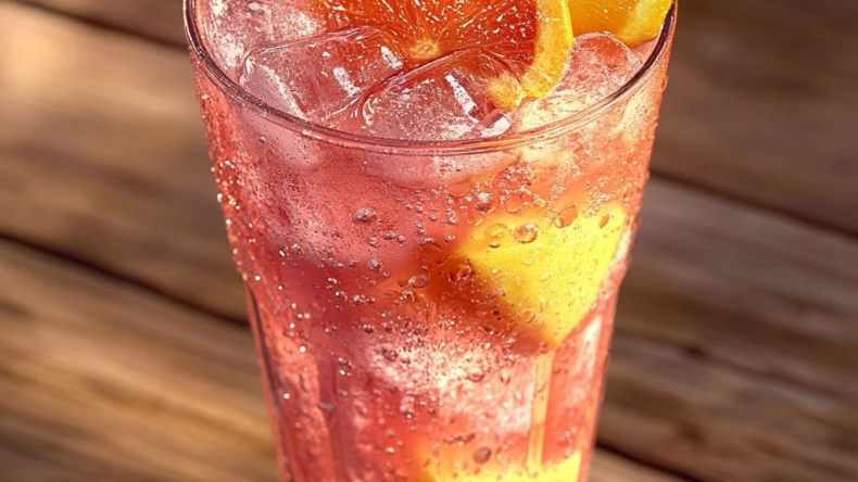 Une boisson fruitée et pétillante, associant orange, citron, ananas et une touche de grenadine pour une couleur rose éclatante et un goût équilibré.