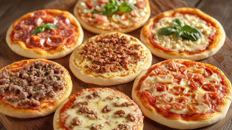 Une petite pizza au goût authentique, avec une pâte fine, de la sauce tomate et des garnitures diverses et savoureuses, l’Idéale pour un encas léger !