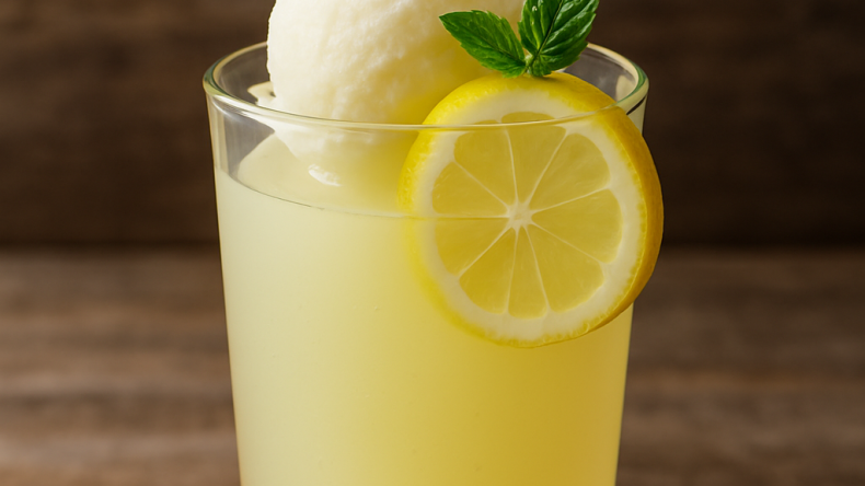 Un mélange gourmand de jus citronné maison et de fruits frais de saison, surmonté d’une boule de glace artisanale (citron, vanille ou fraise). Servie dans une grande coupe transparente pour mettre en valeur ses couleurs et sa fraîcheur.