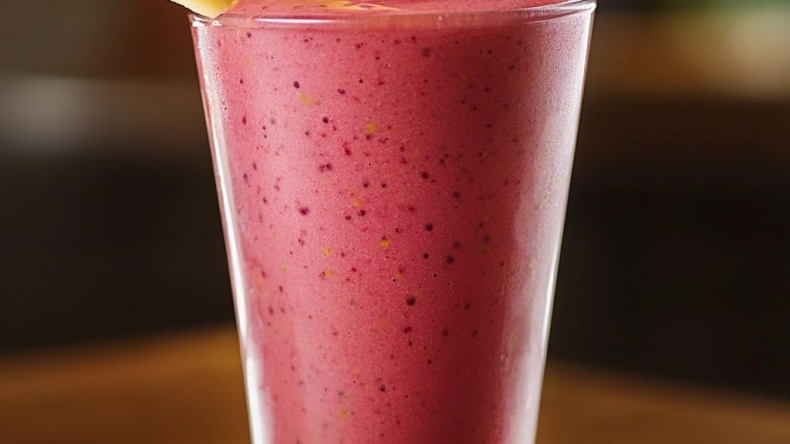 Un mélange vibrant d’ananas, banane et fruits rouges, offrant une explosion de saveurs et une belle teinte colorée. Un choix nutritif et délicieux.